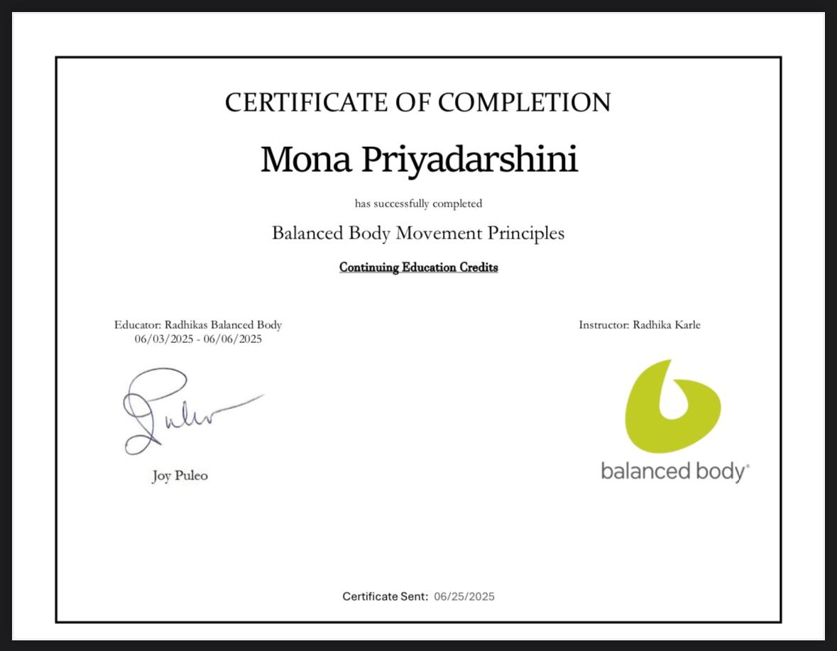 I started my journey as a graduate in Materials Science Engineering, but wellness was always close to my heart, inspired by my father who holds a Master’s in Physical Education and a strong foundation in body anatomy. I joined yoga as a student, and what began as a personal practice soon became a passion. Deeply inspired by its benefits, I pursued certifications in Power Yoga, Pre & Postnatal Yoga, and Multi-Style Yoga from reputed academies, while teaching alongside my learning.